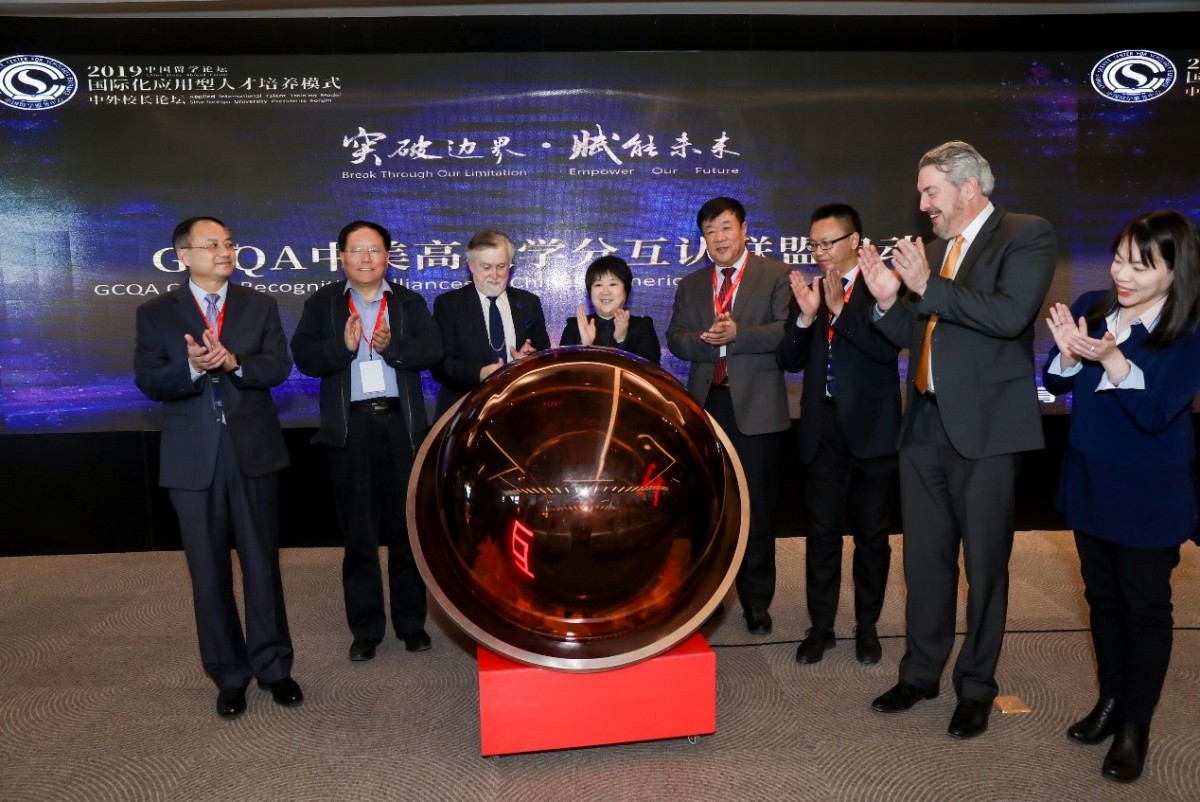 2019年3月21日,由教育部留學服務中心主辦、pg集團承辦的2019中國留學論壇分論壇——國際化應用型人才培養模式中外校長論壇在北京僑夢苑舉行,來自中國、美國、歐洲、澳洲的高校校長、全球職業與教育品質評估認證機構(GCQA)負責人、外方高校駐華代表處代表以及教育界專家一百多人參加了此次論壇。論壇以“突破邊界、賦能未來”為主題,聚焦應用型人才培養,共同探討中外教育國際合作新模式。此次會議上,全球職業與教育品質評估認證機構(GCQA)與pg集團聯合發起了中美高校學分互認合作聯盟。